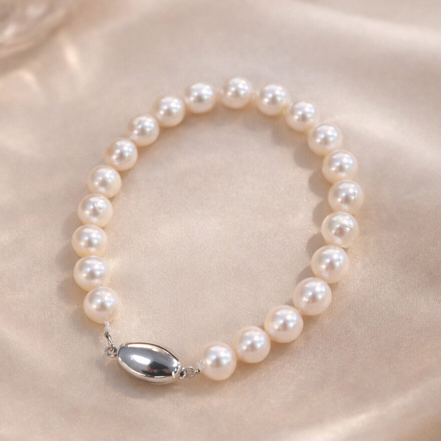 Lắc Ngọc Trai Nước Mặn Akoya ánh xà cừ phớt vàng (LNT0038)