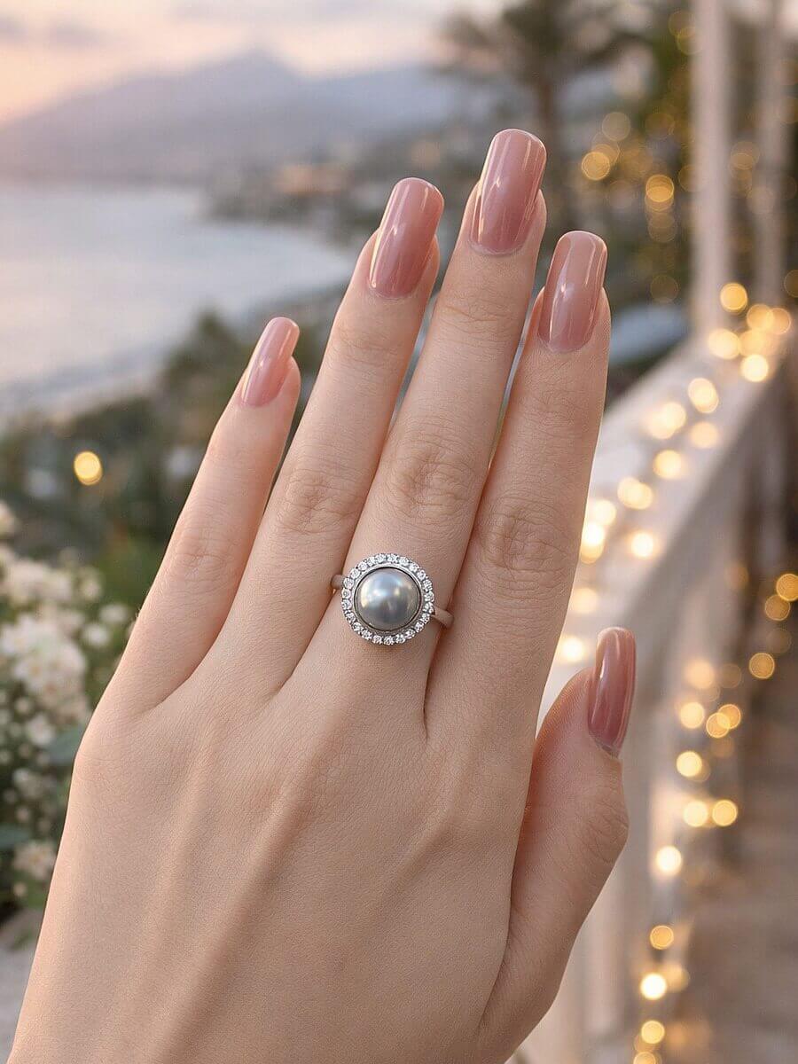Khám phá Nhẫn Ngọc Trai Nước Mặn Tahiti ánh xà cừ xám free size từ MOON Jewelry – thiết kế tinh xảo, sang trọng, mang lại vẻ đẹp huyền bí và may mắn. Lựa chọn hoàn hảo để làm quà tặng ý nghĩa.