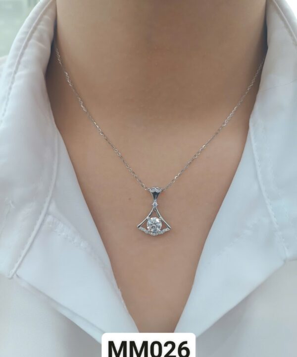 Dây chuyền được thiết kế với form dáng thanh thoát, phù hợp với nhiều phong cách từ nhẹ nhàng, thanh lịch đến quyến rũ. Viên Moissanite cắt chuẩn kim cương mang lại hiệu ứng bắt sáng mạnh mẽ, nổi bật dưới mọi góc nhìn.